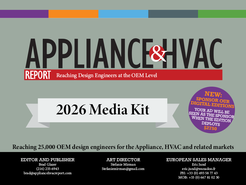 THE APPLIANCE & HVAC REPORT debuted in Sept./Oct. 2019, and is now published quarterly. It reaches original equipment manufacturer (OEM) design engineers in these and related markets. Circulation 25,000.